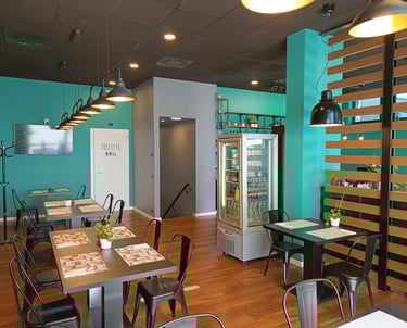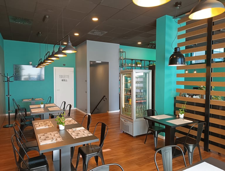 Ambiente sobrio, moderno e confortevole per gustare una pizza semplice e gustosa.